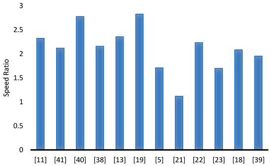 A labelled comparison of various contributions by researchers of INVELOX in terms of speed ratio.