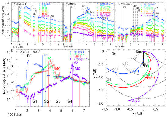 - Reames, D.V. Review and outlook of solar-energetic-particle measurements on multispacecraft missions. Front. Astron. Space Sci. 2023, 10, 1254266. [Google Scholar] [CrossRef]