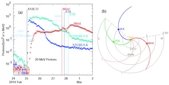 - Ng, C.K.; Reames, D.V. Shock acceleration of solar energetic protons: The first 10 minutes. Astrophys. J. Lett. 2008, 686, L123. [Google Scholar] [CrossRef]
