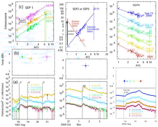 - Reames, D.V. Seeds and sequences of element abundances in solar energetic particle events. Eur. Phys. J. Plus 2024, 139, 710. [Google Scholar] [CrossRef]
