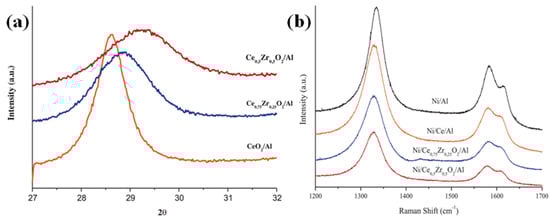(a) XRD patterns of fresh support materials. (b) Raman spectra of used catalysts. Reproduced with permission from []. Copyright 2014, Elsevier.
