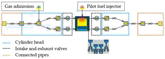In the development process of large engines, 1D-simulation plays an important role [,]. To minimize the operation of large engines at the testbed accurate simulation models are necessary to simulate performance and emissions.