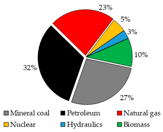Among the main objectives of modern engineering, the search for sources of energy with low environmental impact has exponentially gained relevance and attention with time. The effects of global warming associated with the means of supplying energy have attracted increasing attention around the world. This problem is directly associated with the world energy matrix, since most of the needed energy sources, at present, are provided by the combustion of fossil sources as shown in Figure 1. Consequently, the excessive use of fossil sources in a conventional way to generate energy implies the release of high volumes of greenhouse gases, and especially carbon monoxide, which presents a constant increase in emission rates year after year as shown in Figure 2.