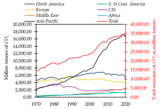 CO2 emissions in million tonnes based on data reported by BP, 2020.