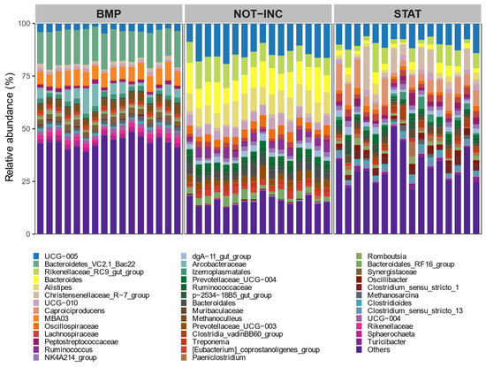 p < 0.05 level after 999 permutations. To determine which fecal bacterial taxa were significantly different between BMP and static manure incubation trials, a linear discriminant analysis was performed as implemented in the