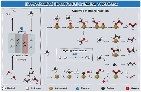 Schematic illustration of the catalytic reaction mechanism of the electrocatalysis of methane. Reproduced with permission from [87], John Wiley and Sons, 2020.