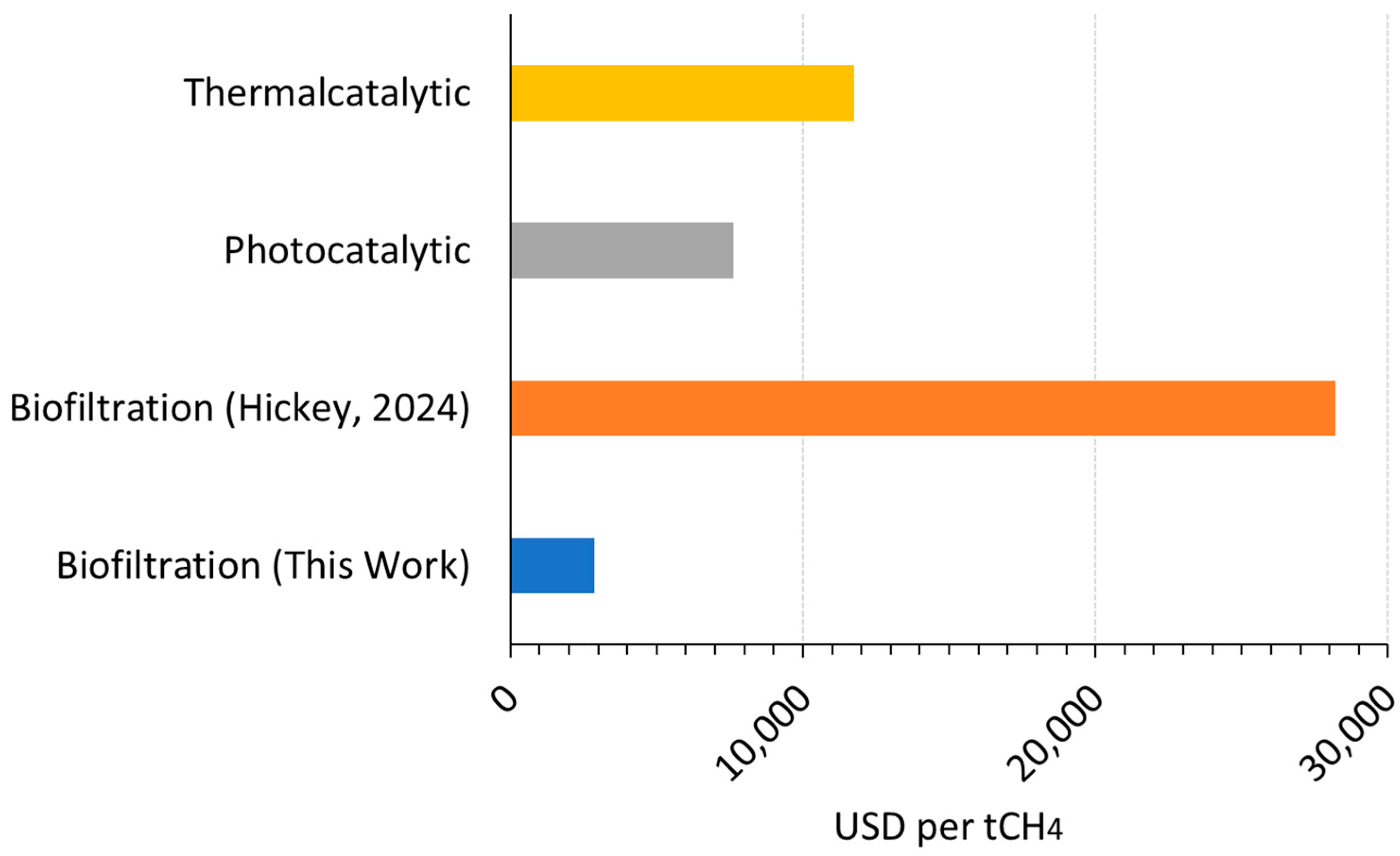 9] conducted a techno-economic assessment (TEA) study on a variety of methane mitigation technologies. Thermocatalytic oxidation has an estimated removal cost of EUR 10,000/tCH