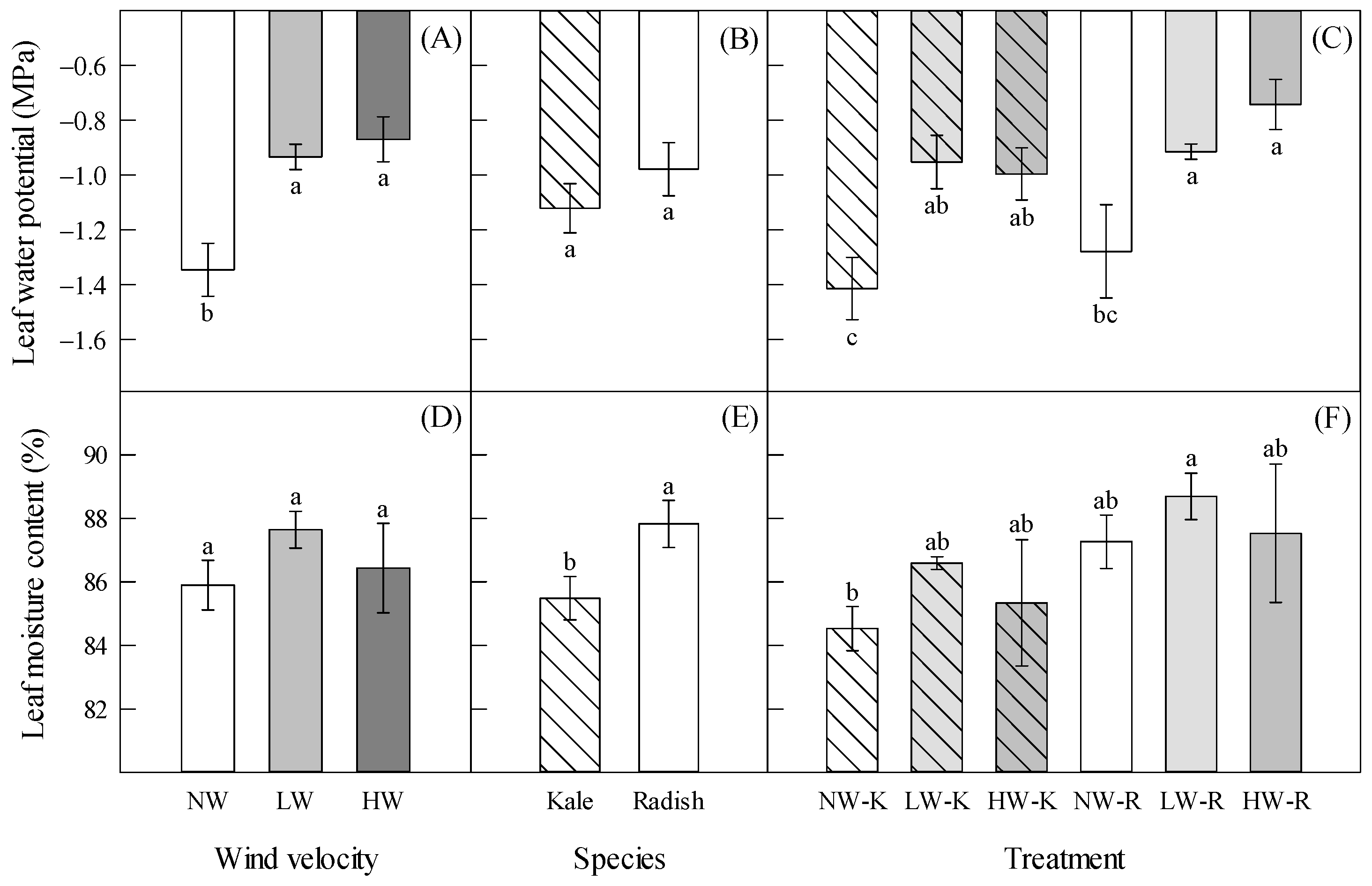 4.6. Measurement of Leaf Water Potential and Moisture Content