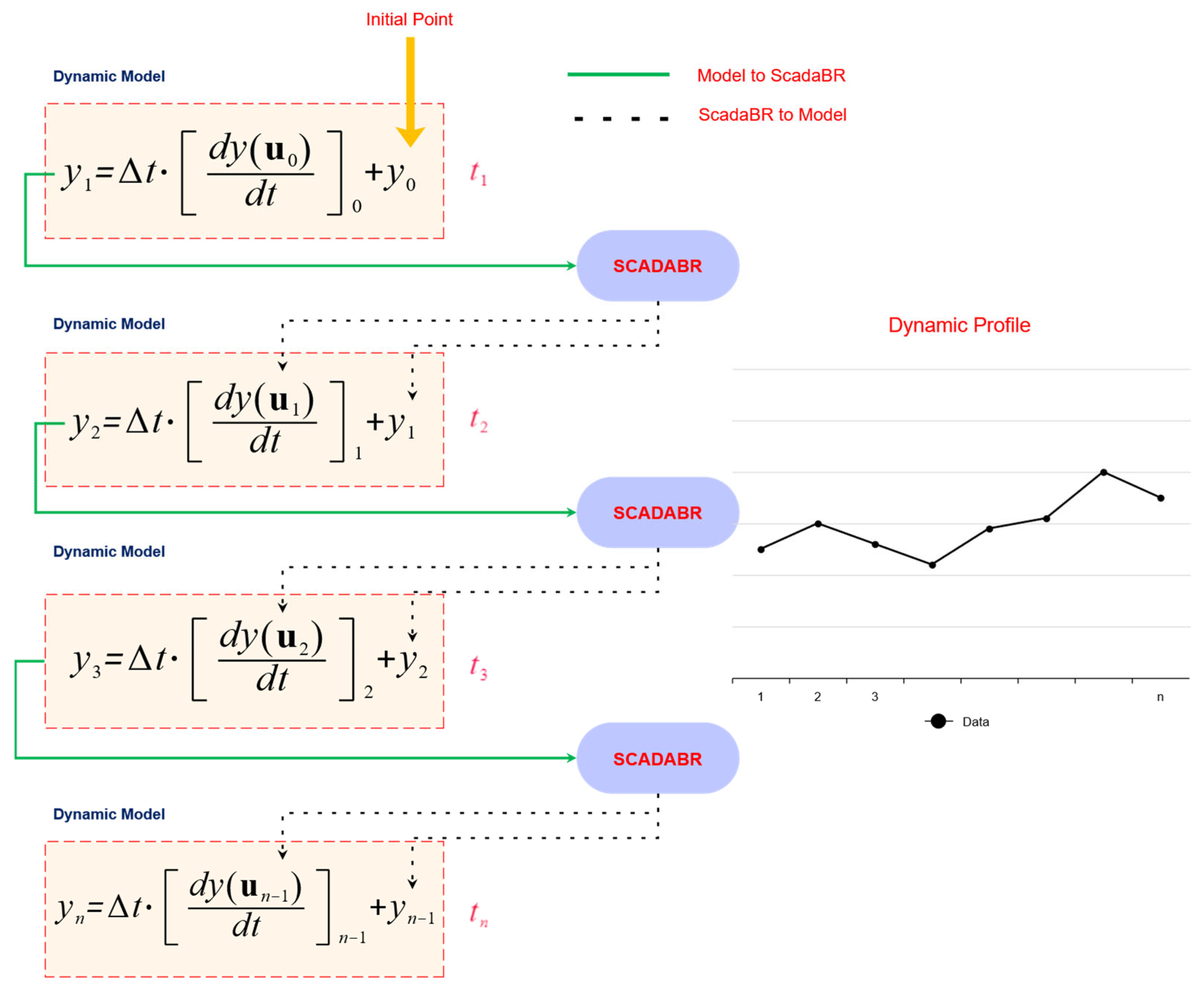 The dynamic model is initialized using the initial values provided by ScadaBR.