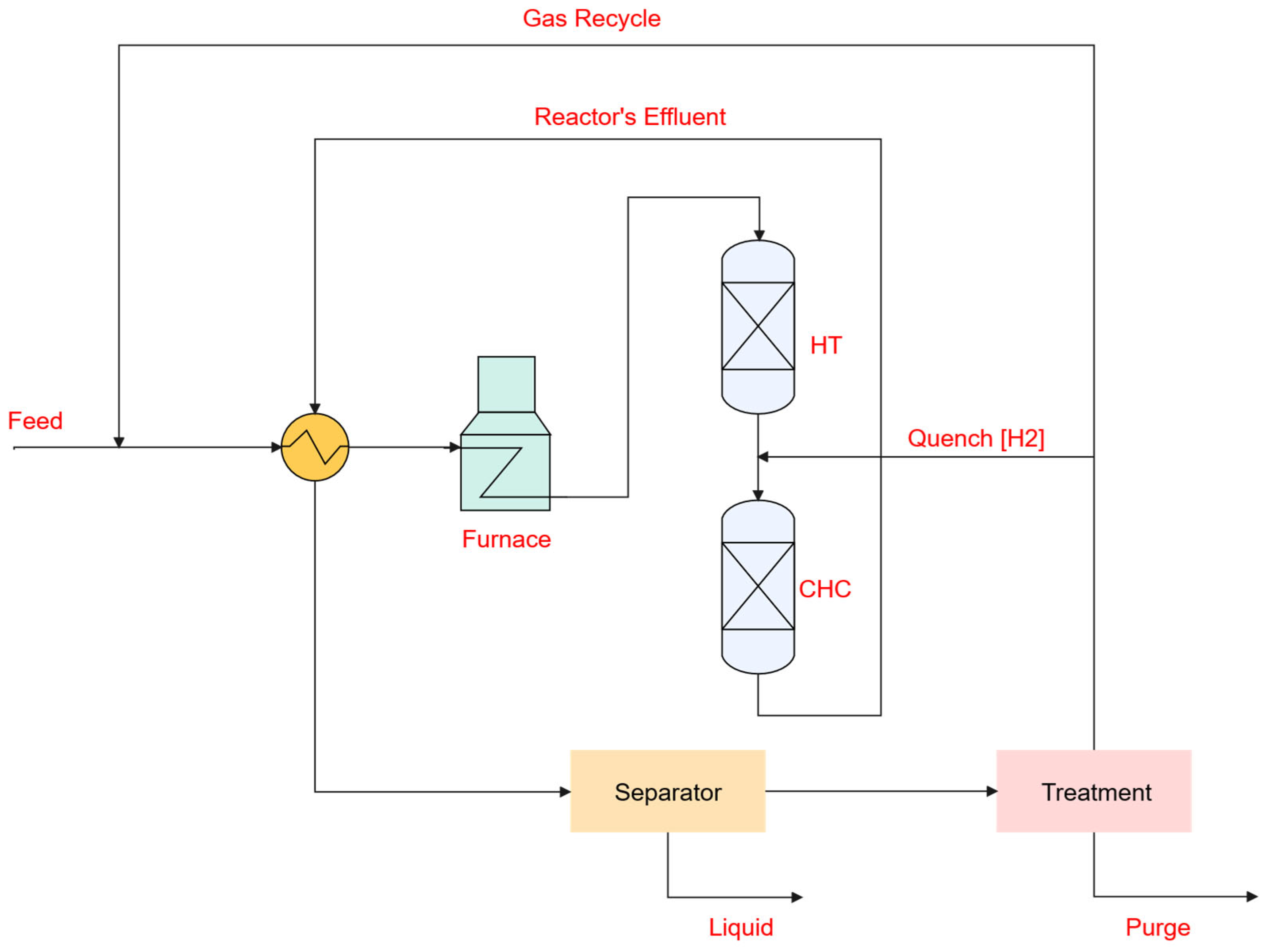 The catalytic hydrocracking process was performed in an isothermal packed-bed tubular reactor under different operating conditions, such as reaction temperatures of 390 °C and 410 °C (according to Barkhordari’s work [