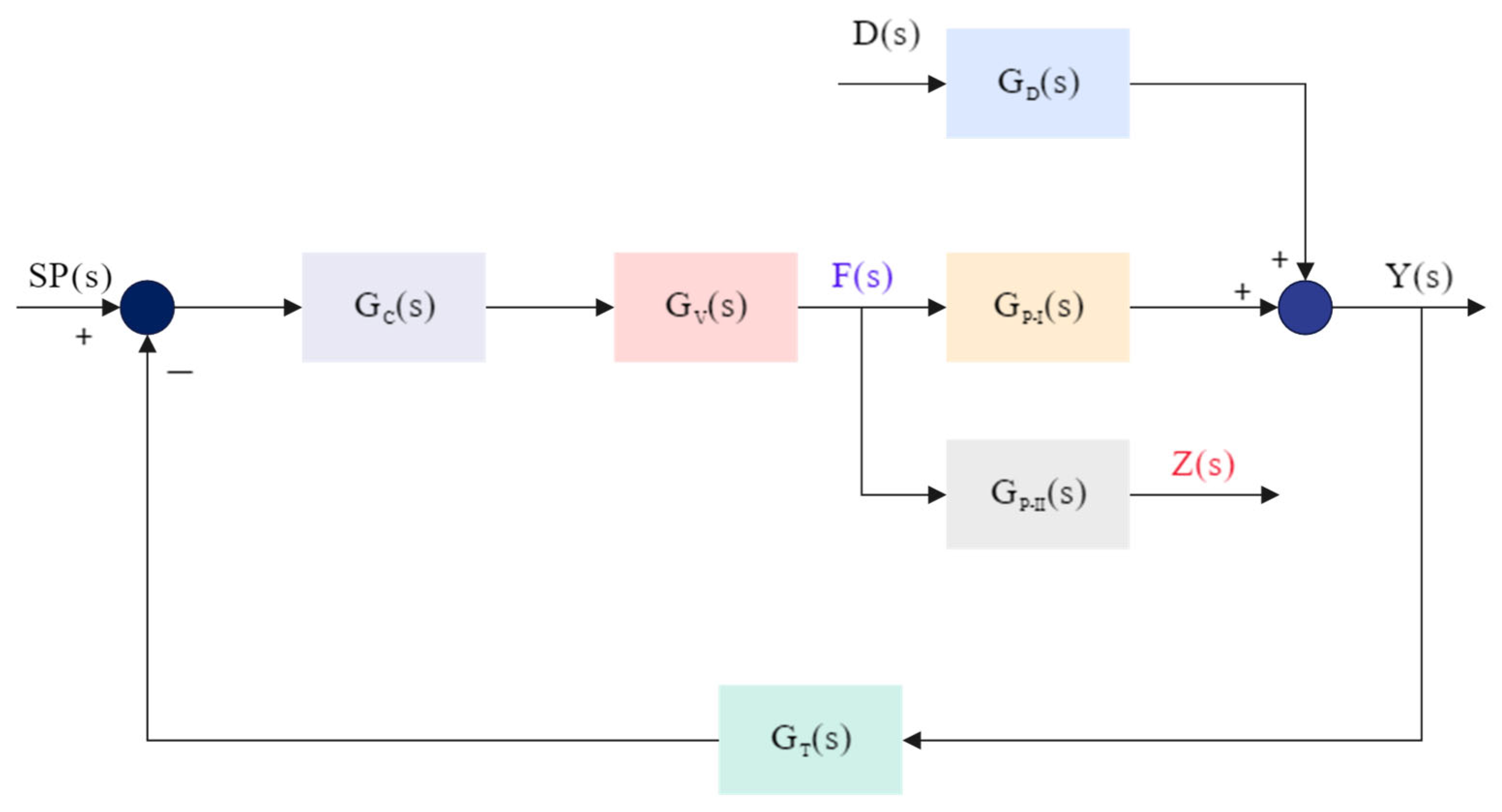 In the FIC-01 (Flow Control Loop), the low proportional gain combined with the relatively large integral time , and the absence of derivative action results in a conservative controller. This leads to a smooth, stable response with minimal oscillations but a longer setting time.