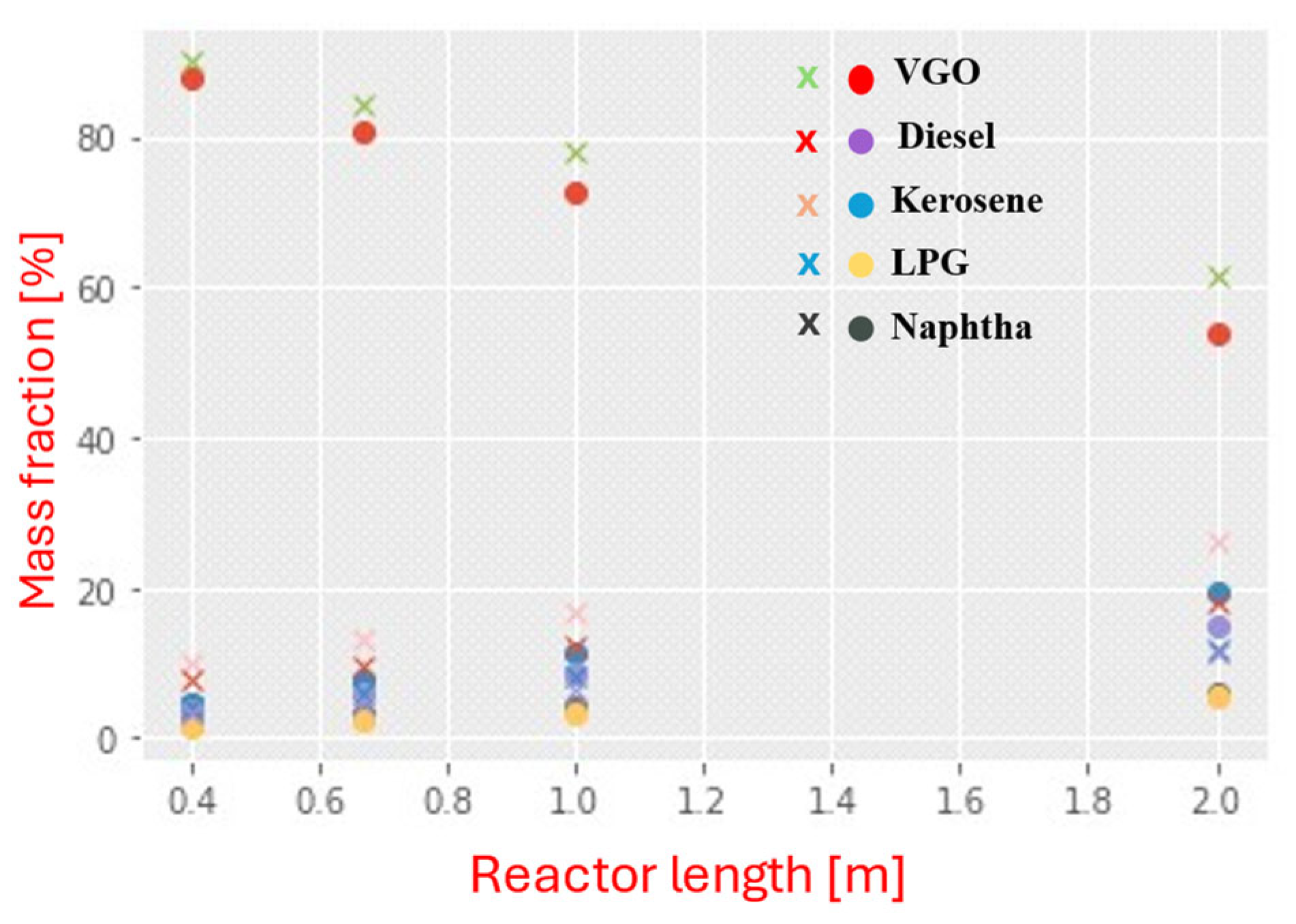 4.1. Results of Case 1: Kinetic Hydrocracking Model