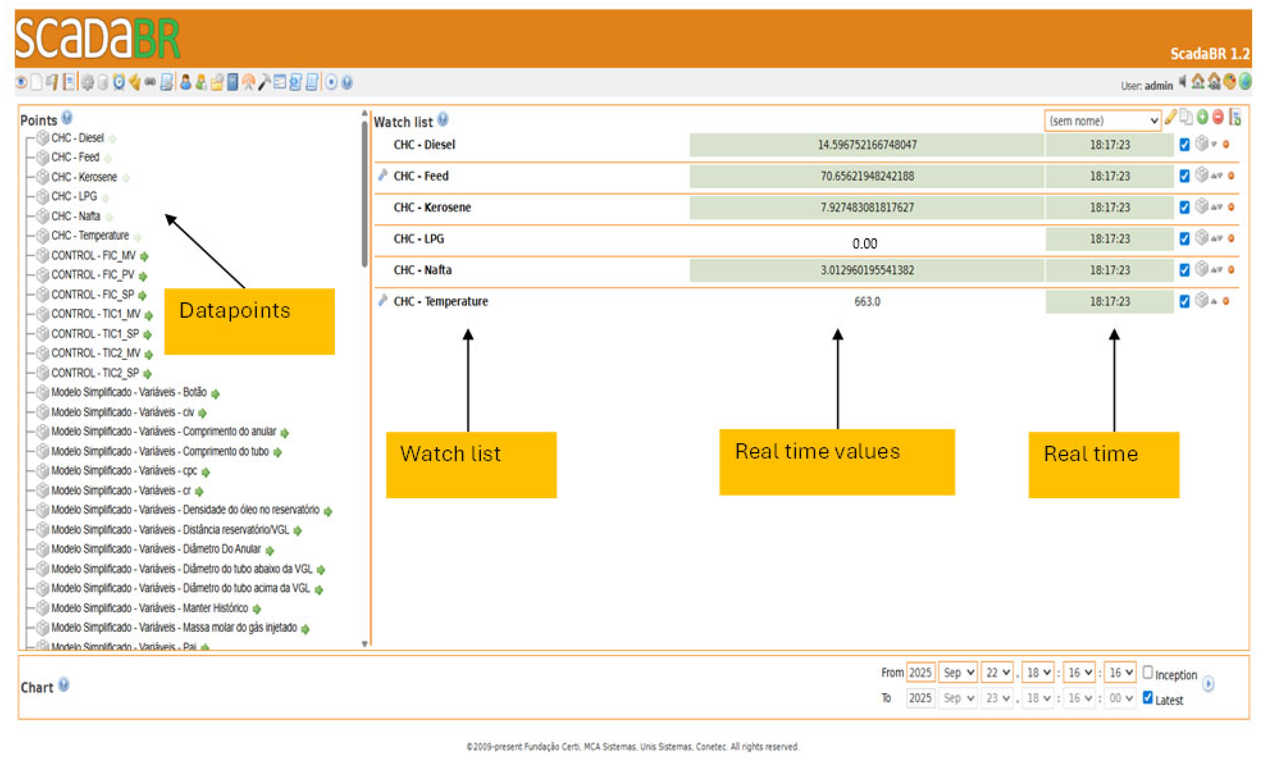 Table 1, several open-source SCADA systems are available. We believe that, among these, ScadaBR is sufficient for small-scale implementations and integration with chemical process simulators. Notice that, in addition to the systems listed in