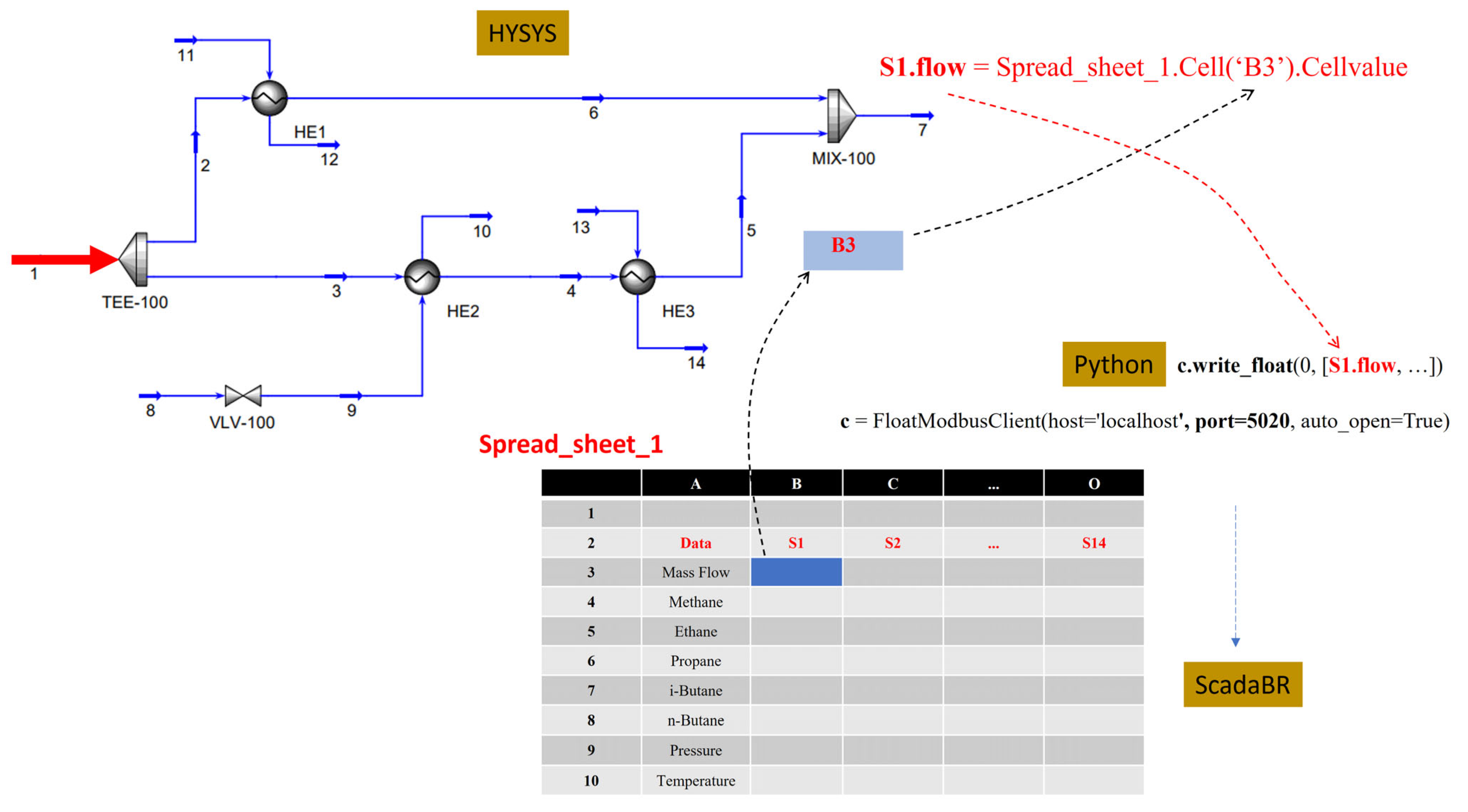 Communication between data from the Aspen HYSYS simulator and Python is already well established in the literature. Details of the communication procedure for Example 2 are provided in