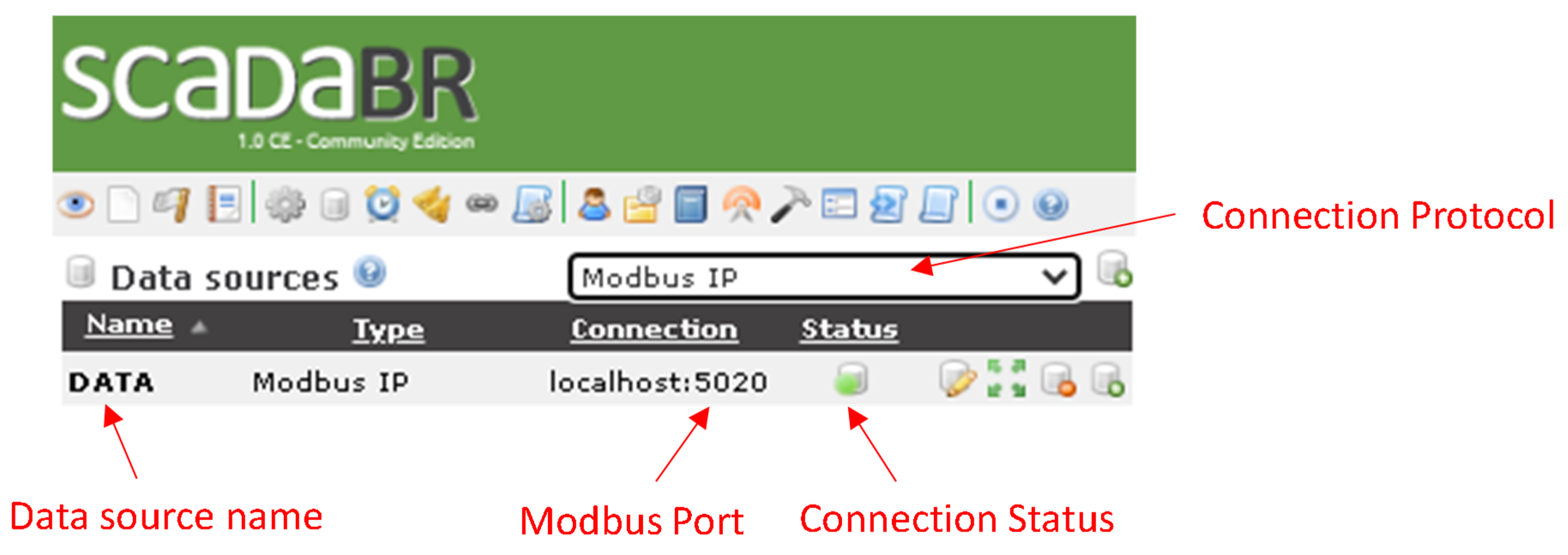 All variables (datapoints) are initialized within the ScadaBR environment.