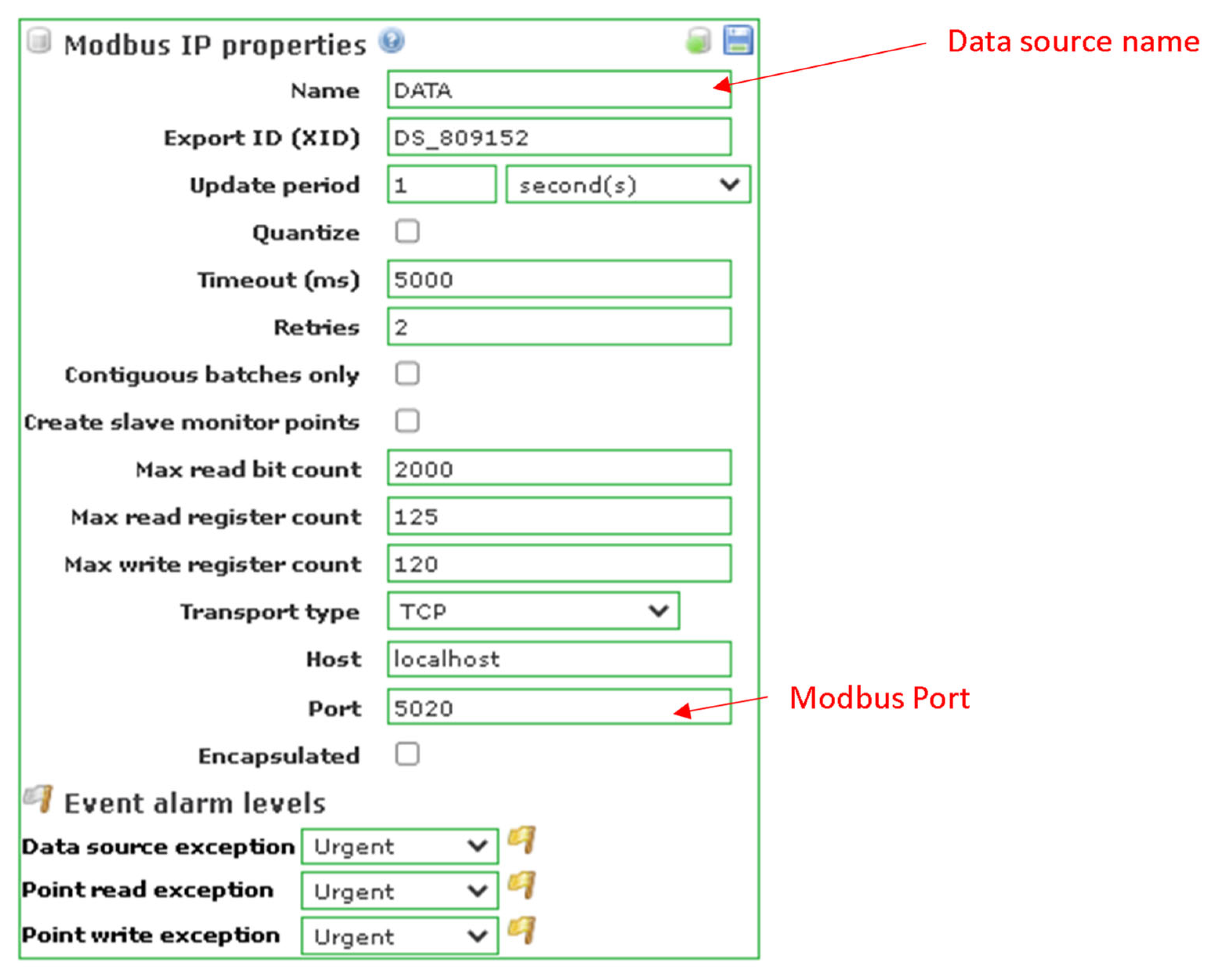 Configuring the DataPoints of each DataSource by linking process variables obtained from the model;
