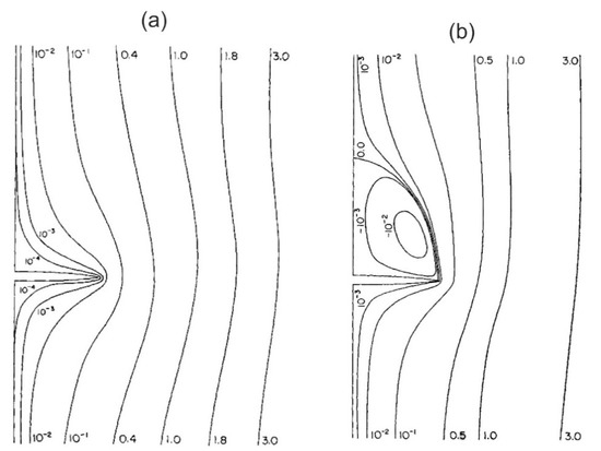 - Dennis, S.C.R.; Chang, G.Z. Numerical integration of the Navier–Stokes equations for two-dimensional flow. Phys. Fluid 1969, 12, II-88–II-93. [Google Scholar] [CrossRef]