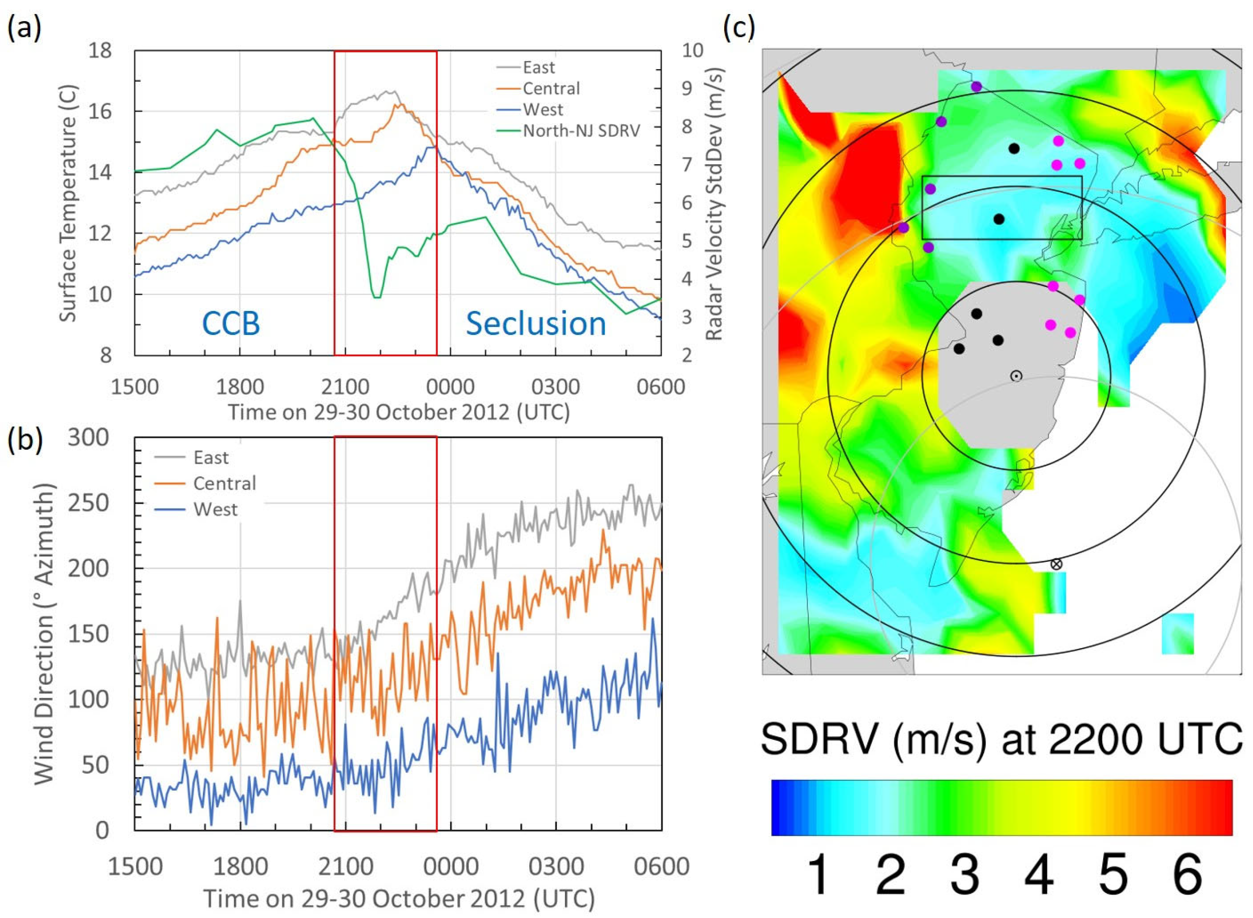 - Schiavone, J.A.; Gao, K.; Robinson, D.A.; Johnsen, P.J.; Gerbush, M.R. Large Roll Vortices Exhibited by Post-Tropical Cyclone Sandy during Landfall. Atmosphere 2021, 12, 259. [Google Scholar] [CrossRef]