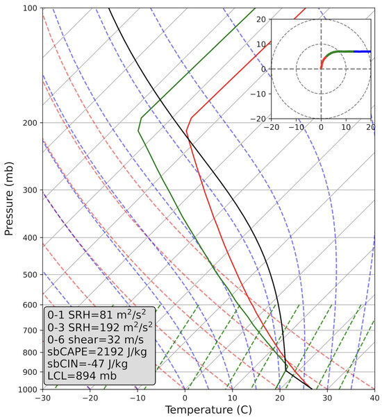 - Thompson, R.L.; Edwards, R.; Hart, J.A.; Elmore, K.L.; Markowski, P. Close proximity soundings within supercell environments obtained from the Rapid Update Cycle. Weather Forecast 2003, 18, 1243–1261. [Google Scholar] [CrossRef]