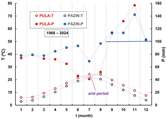 Gaussen-Walter climate diagrams for Pazin and Pula Airport for the period 1968–2024.