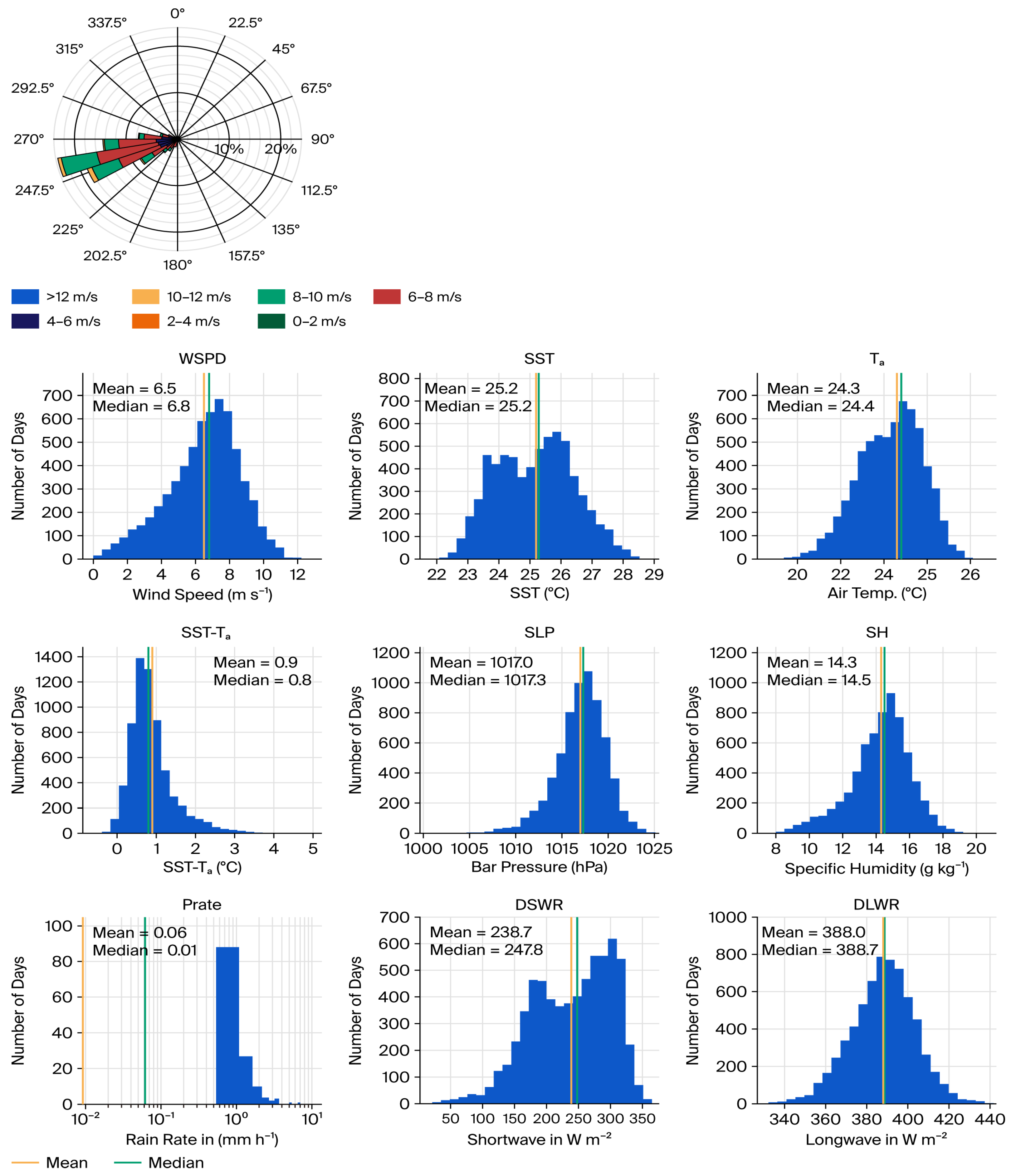 4.1. Statistics of One-Minute Surface Meteorology and Fluxes