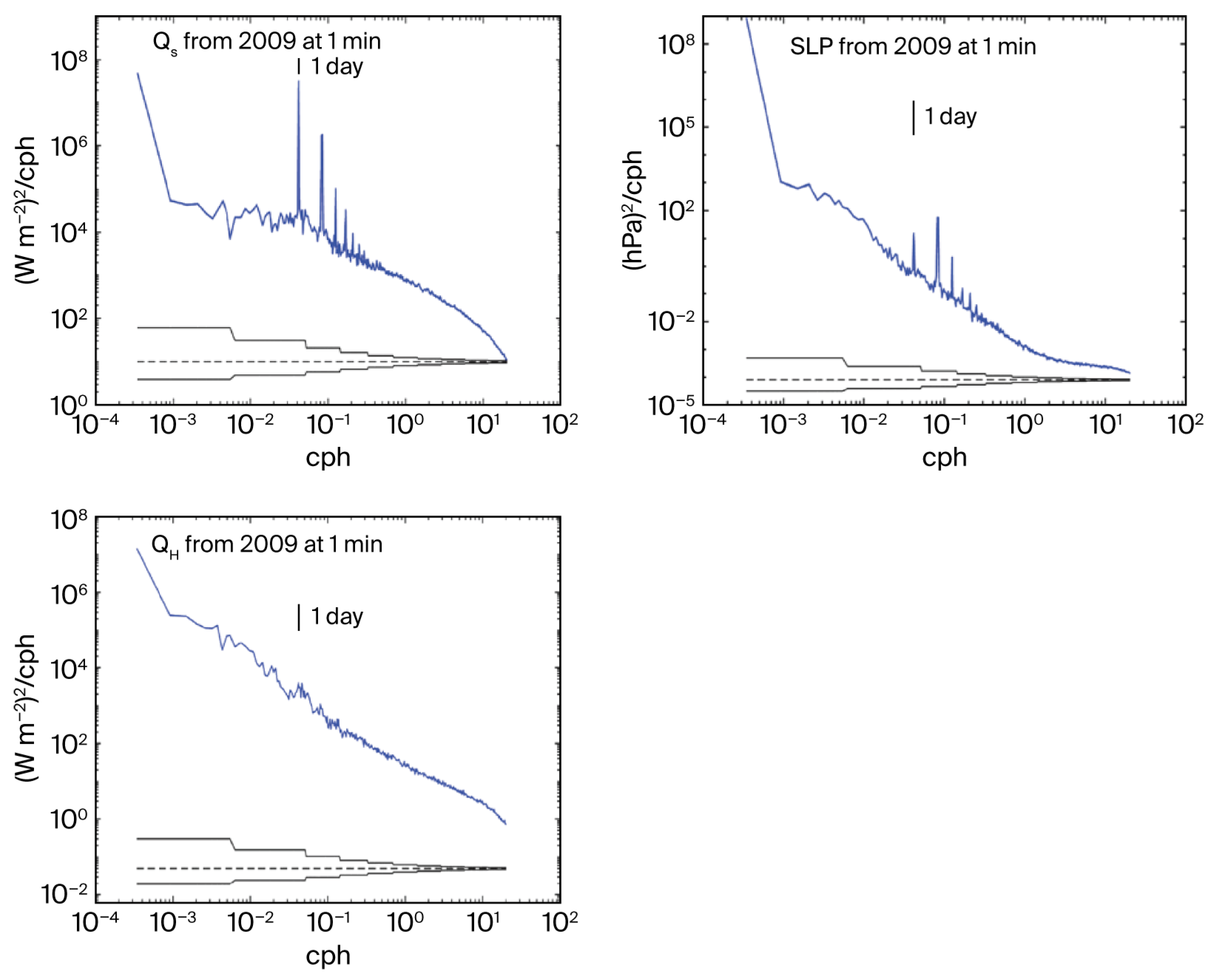 4.2. Frequency Spectra of One-Minute Time Series