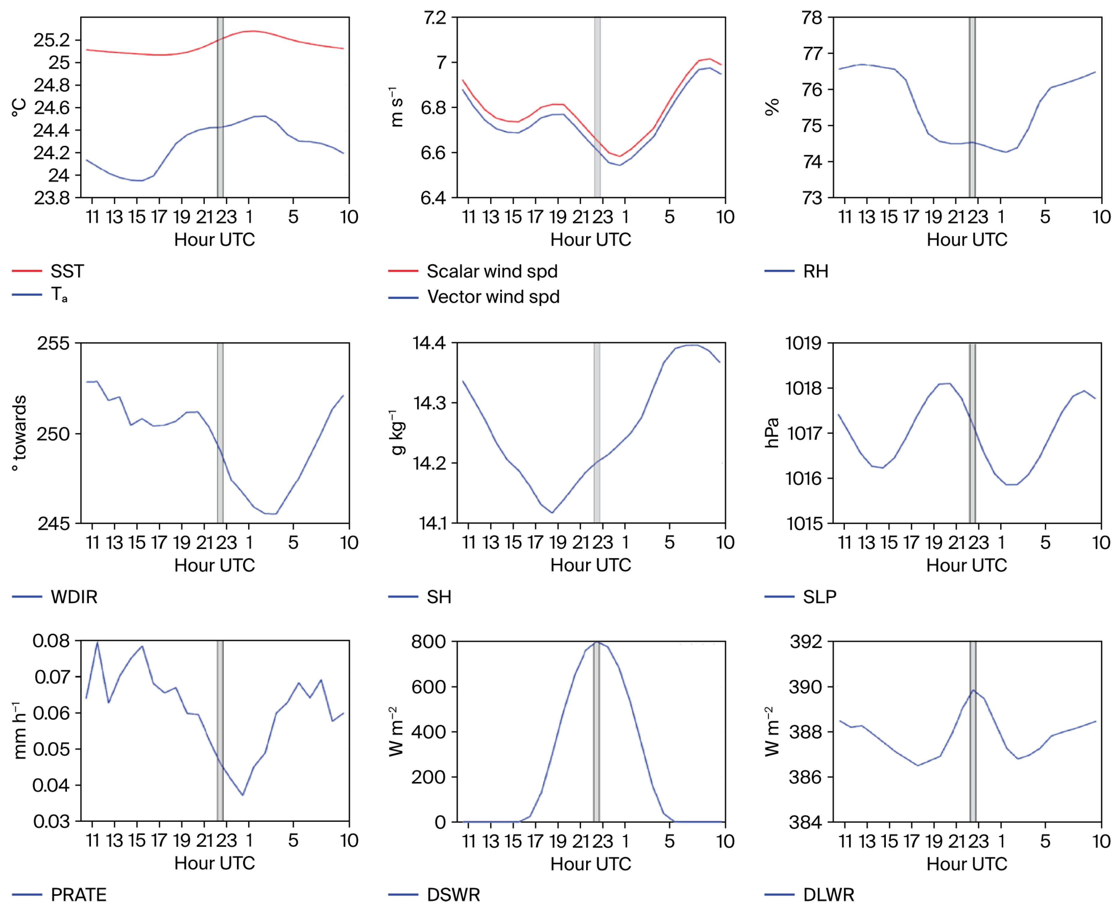 | 2 m SH (g kg−1) | 14.41 | 6.18 | 6.95 | 7.84 | 23.21 | 20.80 | 20.23 |