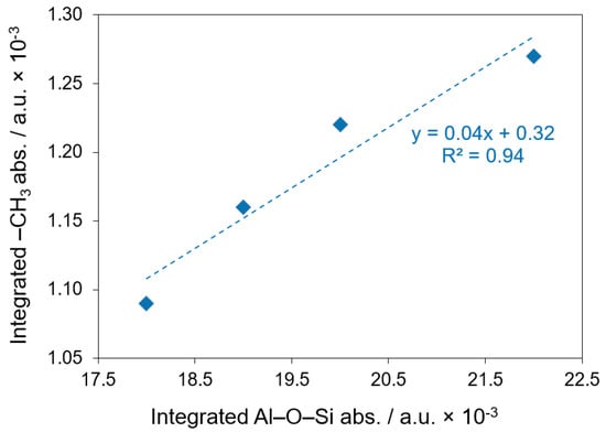 Integrated –CH3 vs. Al-O-Si area data for AR-Al, showing a positive correlation with the growth of Al-O-Si with the increase in –CH3.