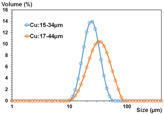 Size distributions of the Cu powders: 17–44 µm powders, and 15–33 µm powders.