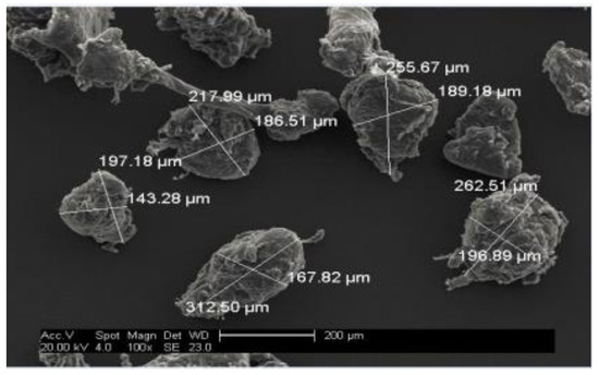 Microscopic image of the polyethylene particles [27].
