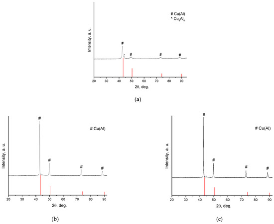 Copper is one of the first metals that mankind learned to process. It was first used 10,000 years ago and has not lost its relevance to the present day. The properties of copper alloys depend on the nature of the alloying elements and the processing conditions. Cu–Al bronzes are known for their mechanical strength, wear resistance and corrosion resistance, which are higher than those of pure copper [1,2]. The Cu–Al alloys are usually produced commercially in the cast and wrought forms. However, casting and deformation processing are not the only technologies suitable for alloy development. Bronzes are also produced by powder metallurgy [3,4]. The most common powder metallurgy bronzes are Cu–Sn alloys (with different levels of porosity).