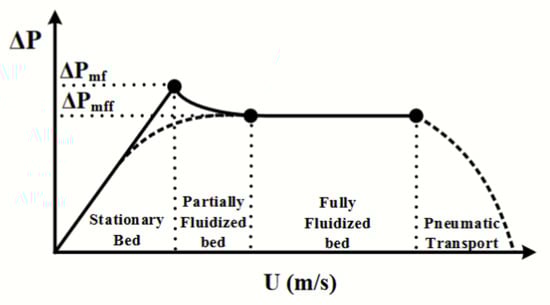 - Geldart, D. Types of gas fluidization. Powder Technol. 1973, 7, 285–292. [Google Scholar] [CrossRef]