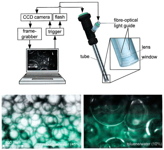 - Maaβ, S.; Wollny, S.; Voigt, A.; Kraume, M. Experimental comparison of measurement techniques for drop size distributions in liquid/liquid dispersions. Exp. Fluids 2011, 50, 259–269. [Google Scholar] [CrossRef]