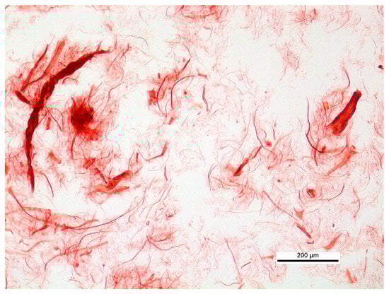 Lauri et al. [74] studied the flocculation of CMF fibrils during pipe flow with 0.4%, 1.0%, and 1.6% CMF consistency (w/w). A microscopic image of the used CMF grade is shown in Figure 8. The experimental setup is shown in Figure 9. The studied suspension was circulated in a flow loop equipped with a flow rate sensor and a temperature control unit. The rheological measurements were performed consistently in a 2.5 m long glass pipe with a diameter of 19 mm. Shear stress in the pipe was determined with a differential pressure sensor—the distance between the measurement taps was one meter.