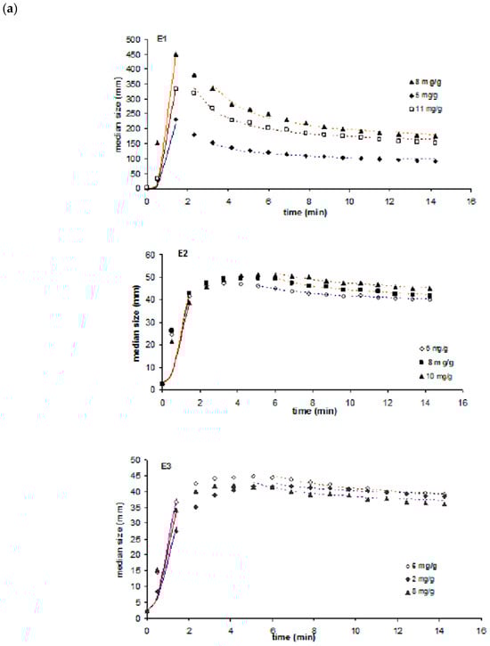 The different aggregation mechanisms, discussed above, usually lead to aggregates with different structures. For instance, aggregates produced through electrostatic interactions are usually smaller, more compact, and more resistant to shear [4]. The same happens if “patching” is the underlying mechanism [4]. On the other hand, if “bridging” is the main mechanism, looser and larger aggregates will be obtained [4,22]. So, depending on the final characteristics desired for the aggregates to be produced, different aggregation mechanisms should be promoted in the process.
