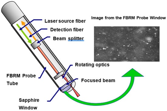 The SOPAT probe is a photo-optical probe with integrated image analysis. It involves an endoscope connected to a CCD high-speed camera as a microscope lens. A strobe flashlight is guided by a fiber optic cable to ensure sharp images with an exposure of 1–10 µs, which allows for pseudo-static images (stroboscopy effectively stops the flow during a measurement), as shown in Figure 4. Illumination plays an important role in the settings; illumination intensity can be controlled to obtain clear and sharp images. This is a high-speed probe that, depending on the system, can acquire up to 2500 images per second.