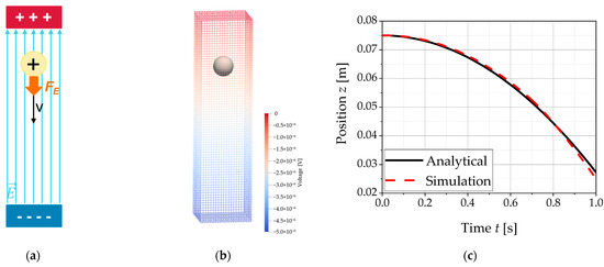 Here, m is the mass of the particle, I is the second moment of area, ω is the angular velocity, and a is the center-to-surface vector. Fppw represents the particle–particle or particle–wall collision forces, Ff is the fluid drag force, and Fg describes the gravitational body force on the particle [36]. Fe denotes the electrical force und Fdep describes the dielectrophoretic force on the particle.
