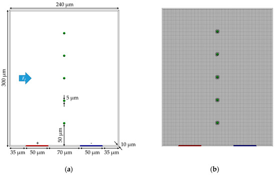 - Cao, J.; Cheng, P.; Hong, F. A numerical analysis of forces imposed on particles in conventional dielectrophoresis in microchannels with interdigitated electrodes. J. Electrost. 2008, 66, 620–626. [Google Scholar] [CrossRef]