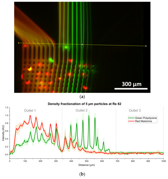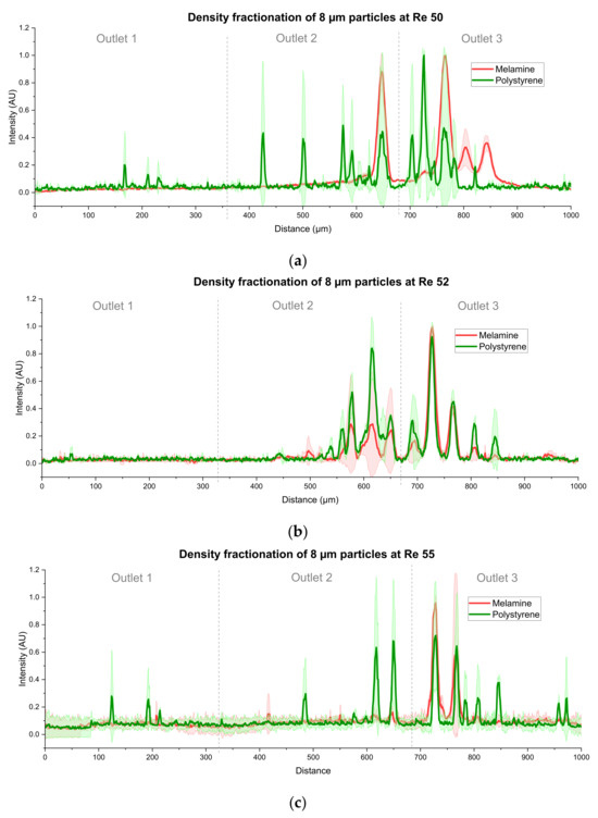 - In the DLD, a density-dependent fractionation was experimentally visible for melamine and polystyrene particles of 5 µm at Re = 82, which appeared to be very sensitive to this certain flow conditions.