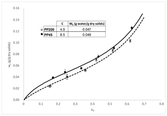 - Camacho, M.M.; Silva-Espinoza, M.A.; Martínez-Navarrete, M. Sorption Behavior, Glass Transition and Flowability of Powdered Orange Co-product. Mater. Circ. Econ. 2021, 3, 17. [Google Scholar] [CrossRef]