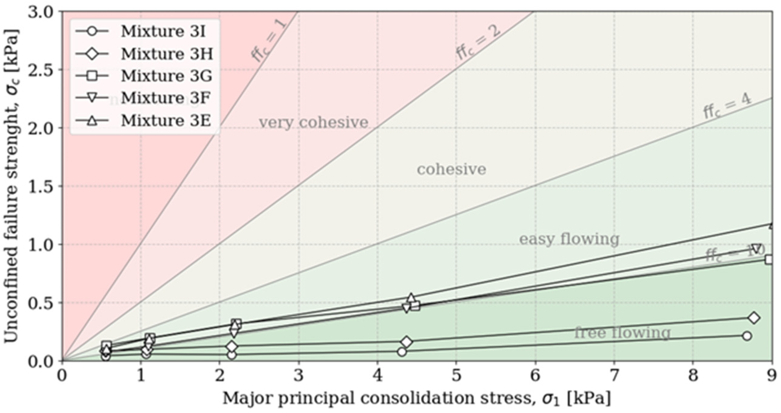 | H.R. | C.I. [%] | ffc | Classification | Friction Angle [°] | |||||