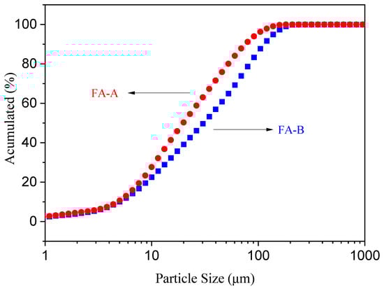 Figure 1. Particle size distribution of the fly ash samples FA-A and FA-B.