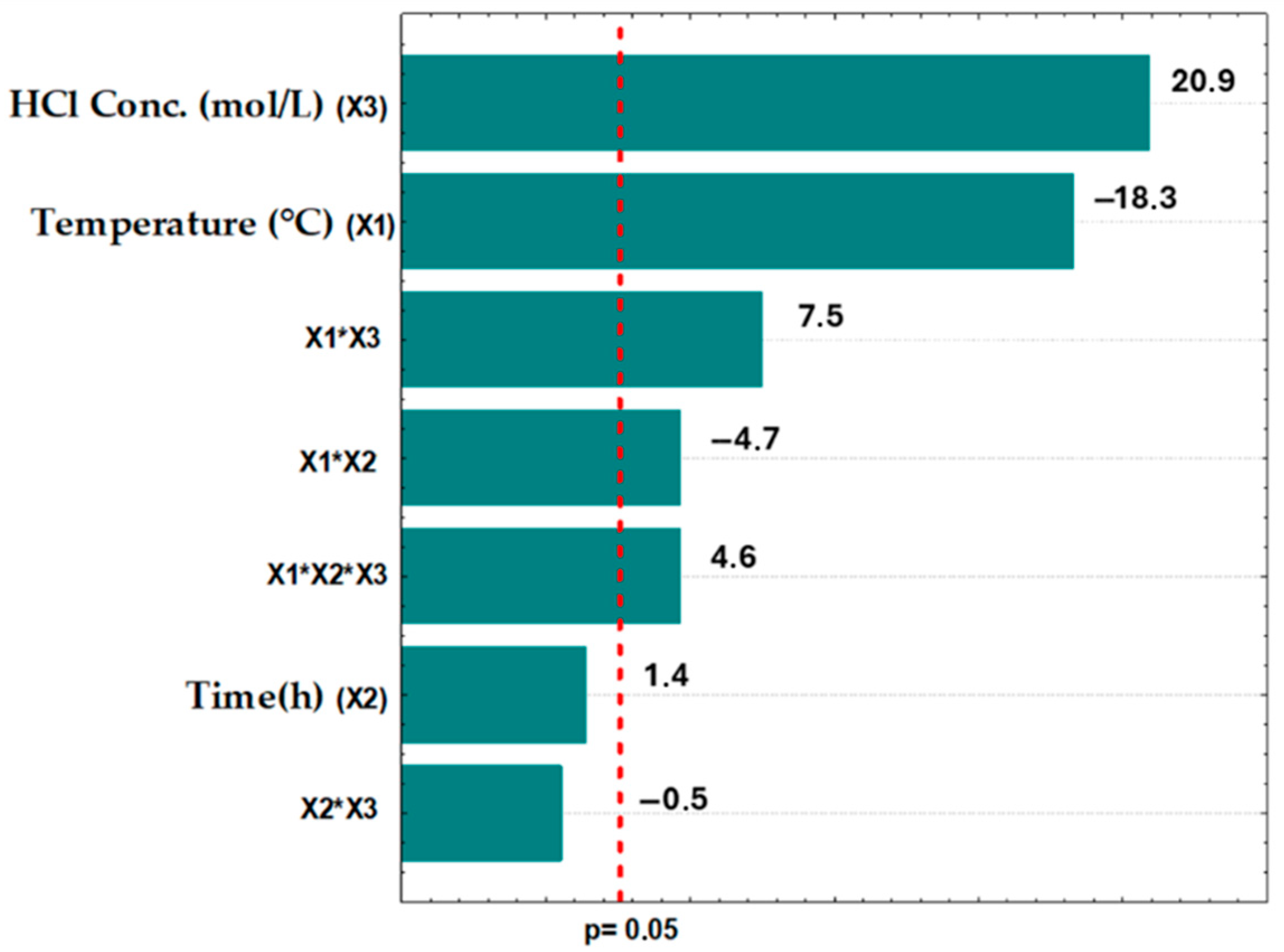 | Experiments | Temperature (°C) | Time (h) | Concentration HCl (mol/L) |