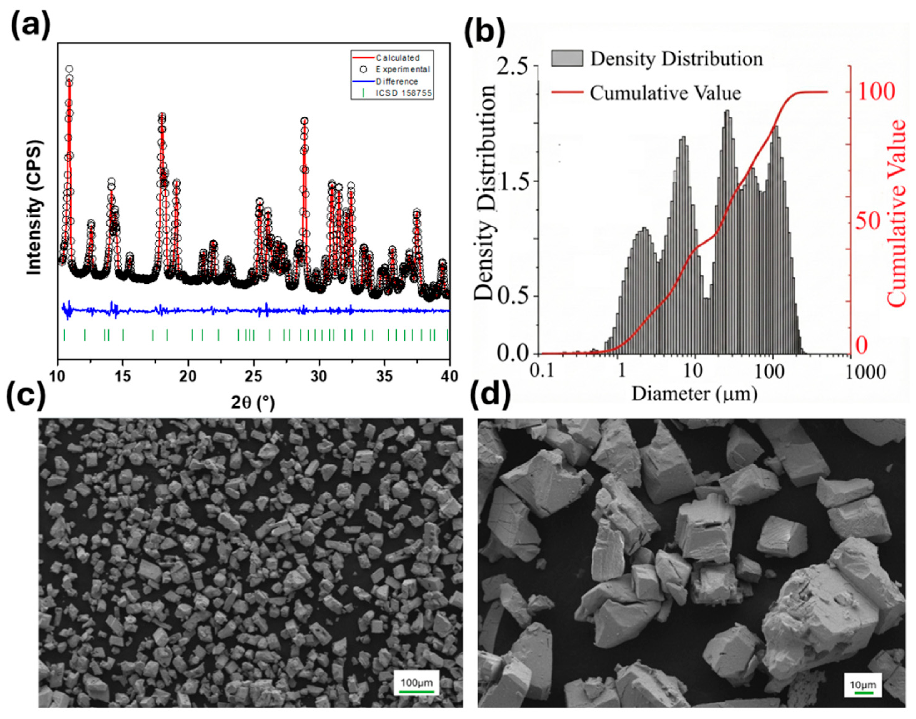 | Phase Name | Cryst. Size (nm) | Lattice Parameter, a (Å) | Lattice Parameter, b (Å) | Lattice Parameter, c (Å) | Phase (%) | CIF | Rwp | Rexp | χ2 |