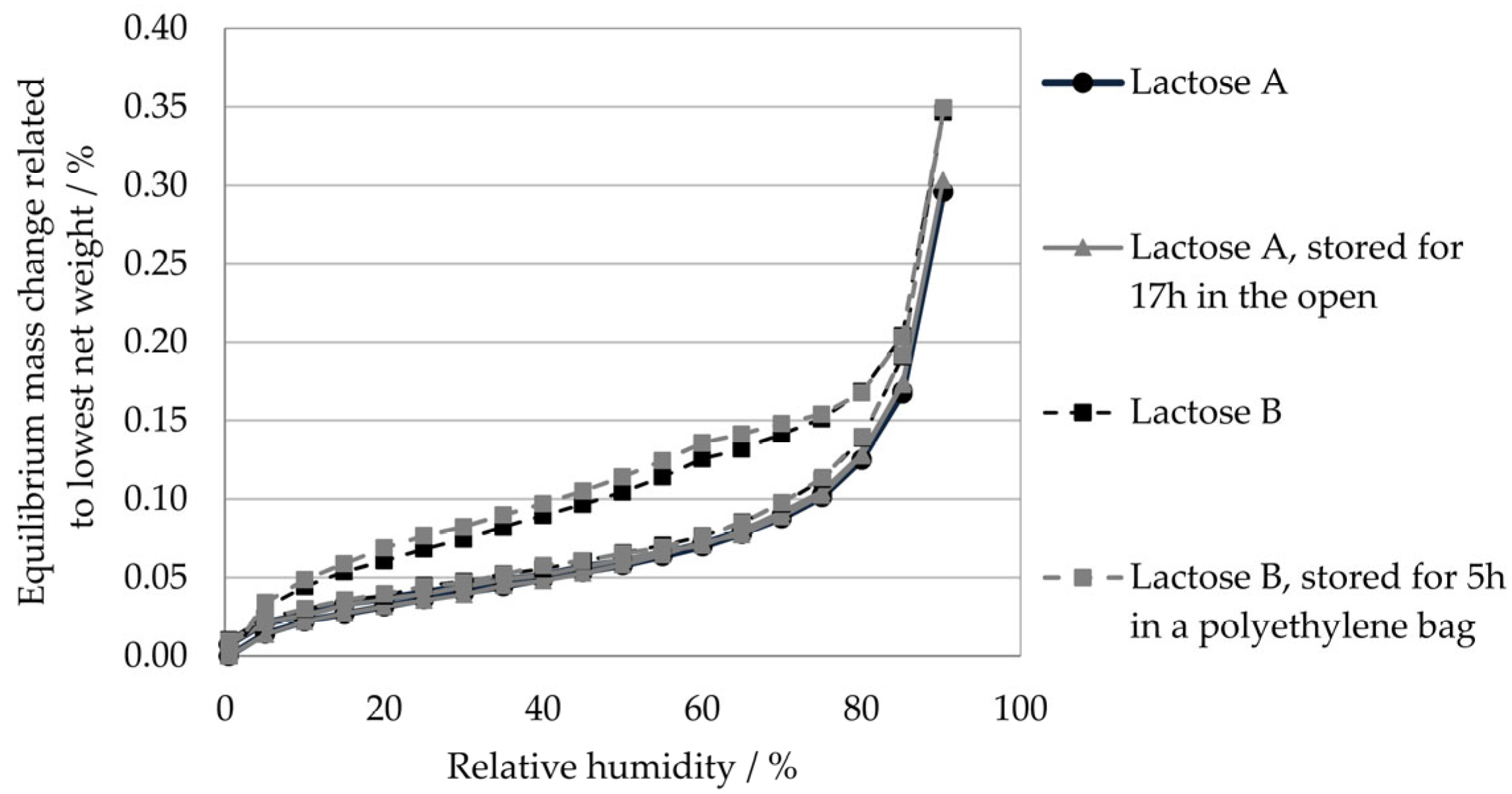 - Stevenson, C.; Monroe, J.; Vazquez, J.M.; Jones, O.; Zhang, R.; Main, E.; Upton, J.; Cheah, W.; Park, S.; Nobbe, B.; et al. The Effects of Humidity on the Adhesion of Pharmaceutical Excipients to Steel Surfaces. Powder Technol. 2024, 435, 119160. [Google Scholar] [CrossRef]