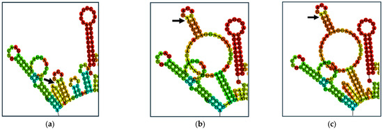 - Sato, K.; Hamada, M.; Asai, K.; Mituyama, T. CentroidFold: A Web Server for RNA Secondary Structure Prediction. Nucleic Acids Res. 2009, 37, W277–W280. [Google Scholar] [CrossRef]