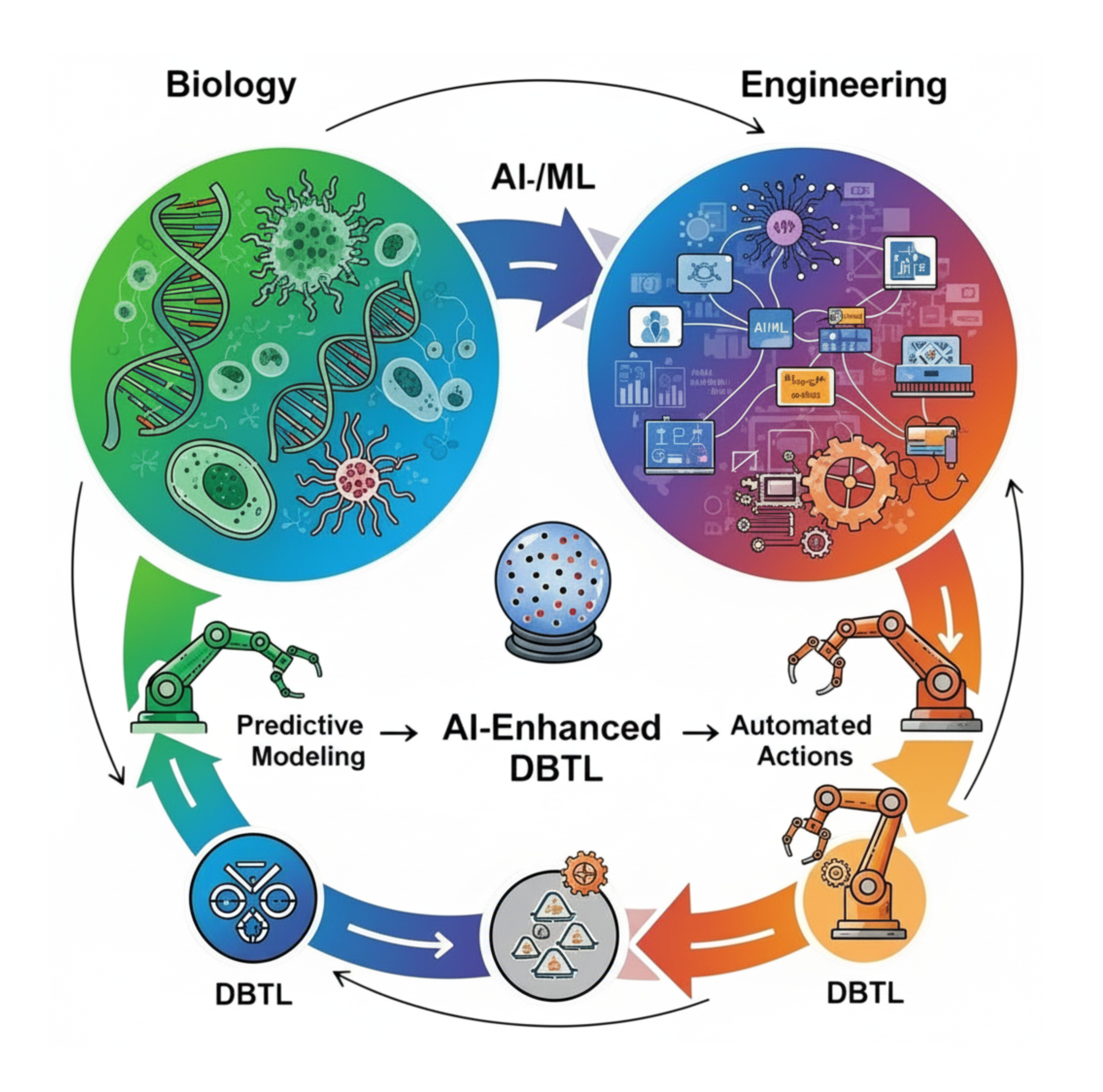 | Build | Manual and labor-intensive assembly: The physical construction of genetic constructs is often performed manually, making it labor-intensive, prone to human error, and limited in throughput. This constraint severely restricts the diversity of genetic libraries that can be synthesized and screened. | Automated synthesis & robotic assembly: Automated DNA synthesis and cloning platforms leveraging high-throughput robotics for constructing gene circuits and pathways. Robotic assembly of genetic constructs (e.g., Golden Gate, Gibson Assembly) minimizes manual intervention and improves consistency. AI-driven scheduling and optimization of robotic workflows to maximize efficiency and minimize material waste. Integration with liquid handling systems for precise reagent dispensing and reaction setup. | Increased throughput & reduced costs: Substantially faster assembly times for complex genetic constructs. Significant reduction in labor costs and human-induced errors, leading to higher reliability. Vastly increased throughput and library diversity, enabling the exploration of a much broader design space. Improved consistency and reproducibility of built components, leading to more reliable experimental outcomes. | ML-guided design–build automation: Bayesian optimization and RL integrate with robotic platforms to automatically determine and execute the most efficient DNA construction protocols. Minimizes human error and labor; accelerates construction time for large genetic libraries by intelligently optimizing assembly protocols [17]. |
