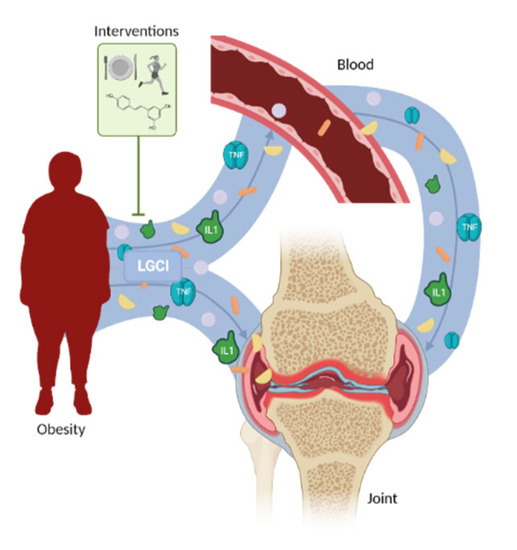 Certain studies have related the LGCI observed in obesity with dysregulation in the gut microbiota, and a role in OA development for this situation has been proposed through the increase in proinflammatory molecules that could activate innate immune responses [34].