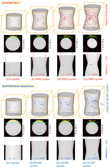 - Bao, J.; Wu, S.; Withers, P.J.; Wu, Z.; Li, F.; Fu, Y.; Sun, W. Defect evolution during high temperature tension-tension fatigue of SLM AISi10Mg alloy by synchrotron tomography. Mater. Sci. Eng. A 2020, 792, 139809. [Google Scholar] [CrossRef]