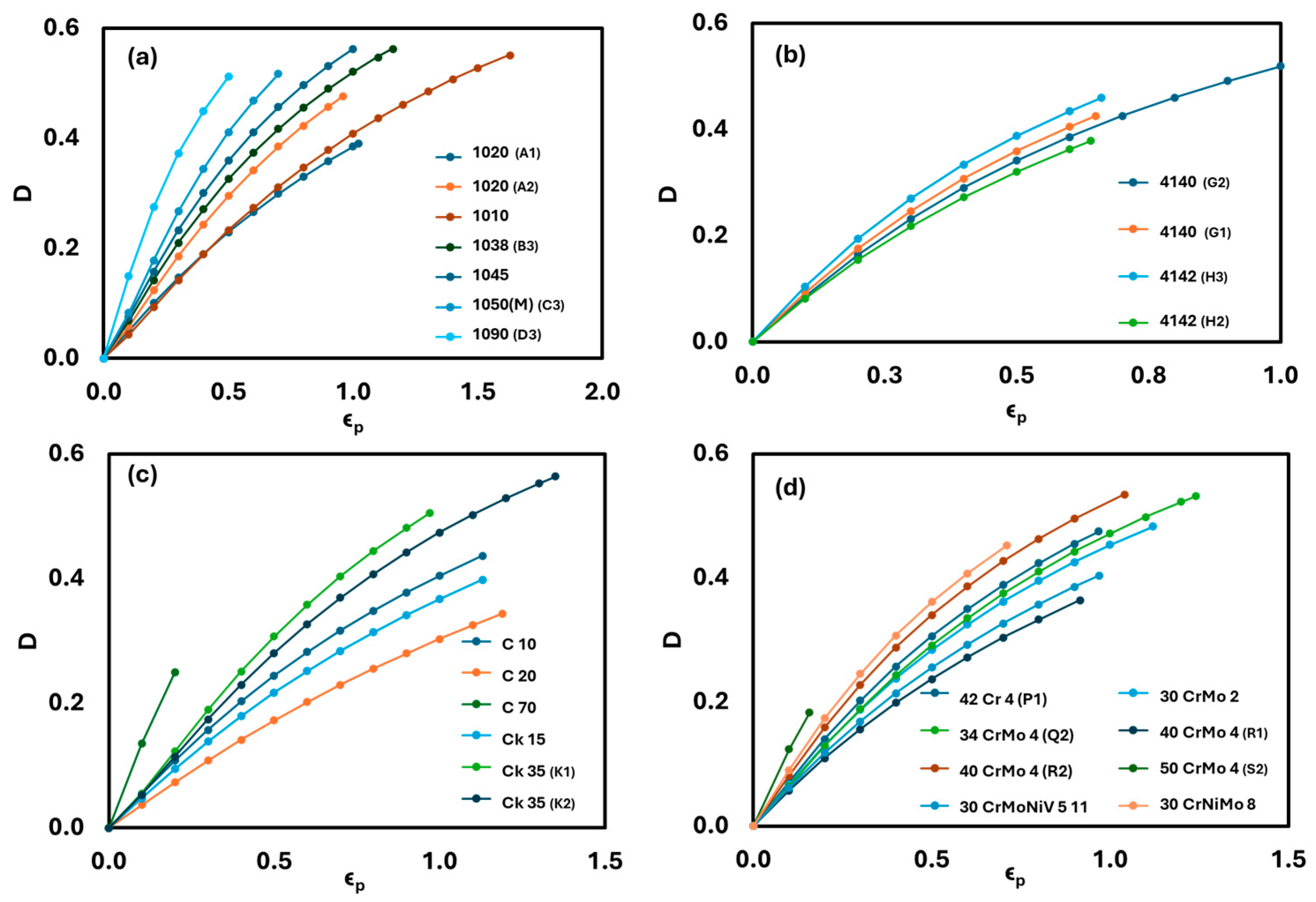 - Gautam, A.; Yadav, R.K.; Ajit, K.P.; Rajak, V.K. A review on CDM-based ductile models and its application. Trans. Indian Inst. Met. 2023, 76, 1141–1154. [Google Scholar] [CrossRef]